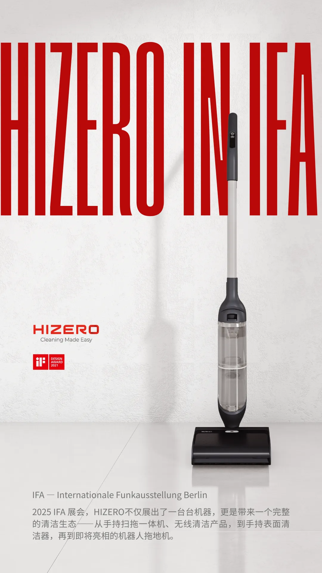2025年9月5—9日,在德國柏林國際電子消費品展(以下簡稱IFA 2025),全球首創「免吸力清潔技術」地面清潔機品牌HIZERO赫茲,帶來了完整清潔生態的品牌產品。