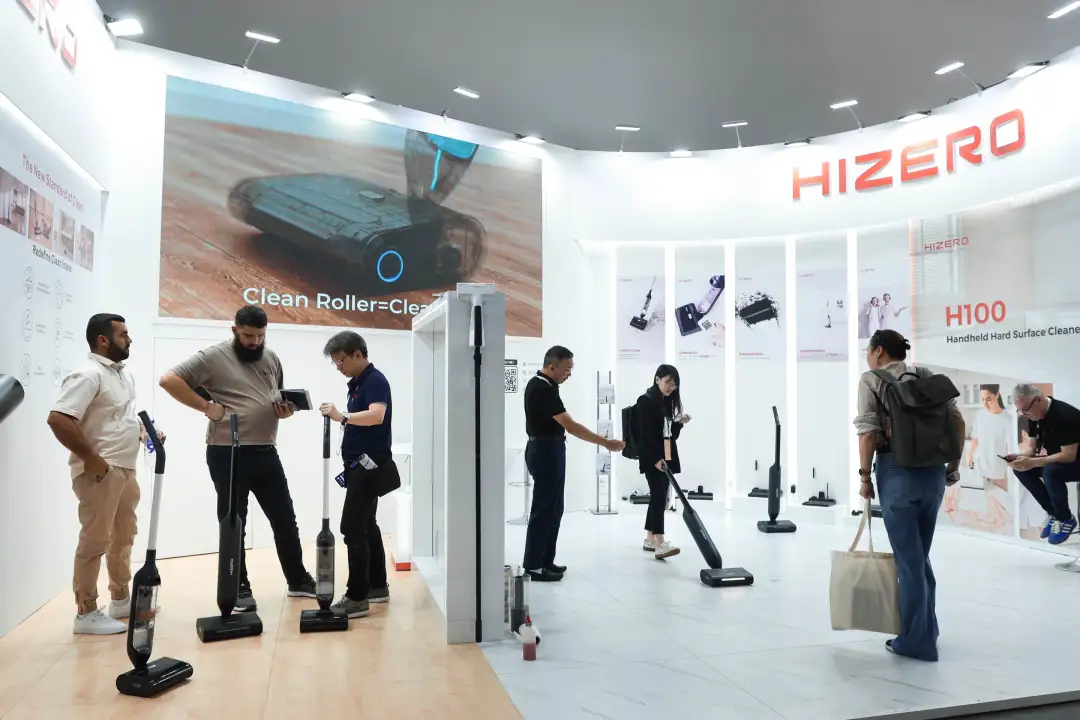 「沒有吸塵器的轟鳴聲,還打掃得這麼乾淨,很好用。」這位參觀者說。根據深圳赫茲家電執行長李開玖介紹,赫茲的「免吸力清潔」是全球首創技術,「我們針對用戶的需求,走自主創新之路。經過10餘年研發,該產品已獲得60多項專利,銷往30多個國家,其中八成業務來自歐洲市場。我們致力於與海外品牌合作夥伴關係、用戶形成合作關係,讓海外